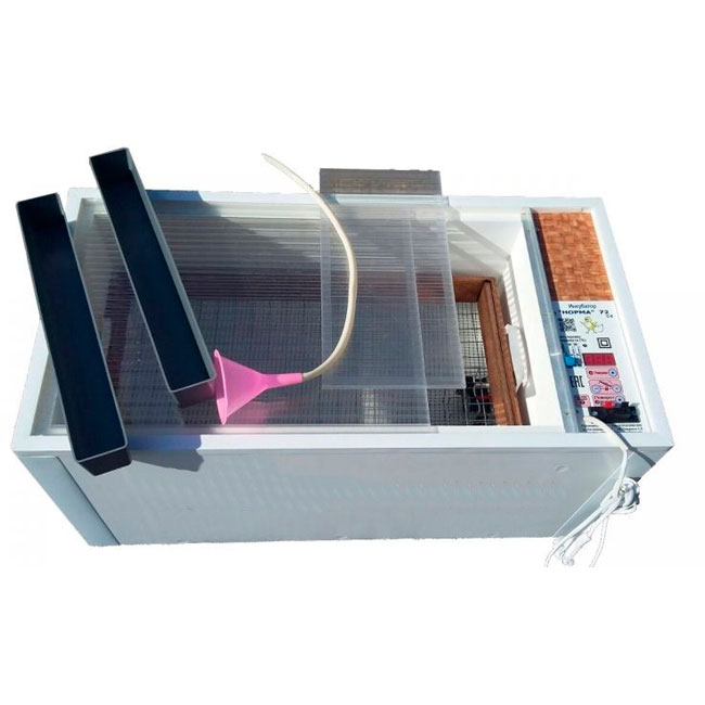 • Автоматический поворот с наклоном лотка через 2 часа. На 72 куриных яйца, 24 гусиных яиц.