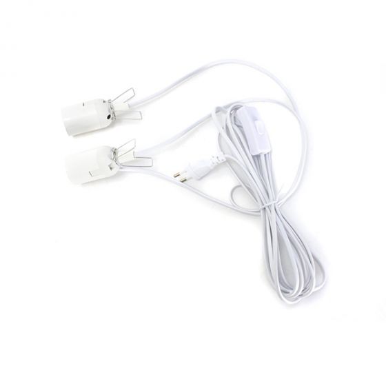 - Сетевой провод длиной 4,6 метра с 2 патронами под цоколь Е27 для монтажа и подключения. Расстояние между патронами 50 см.